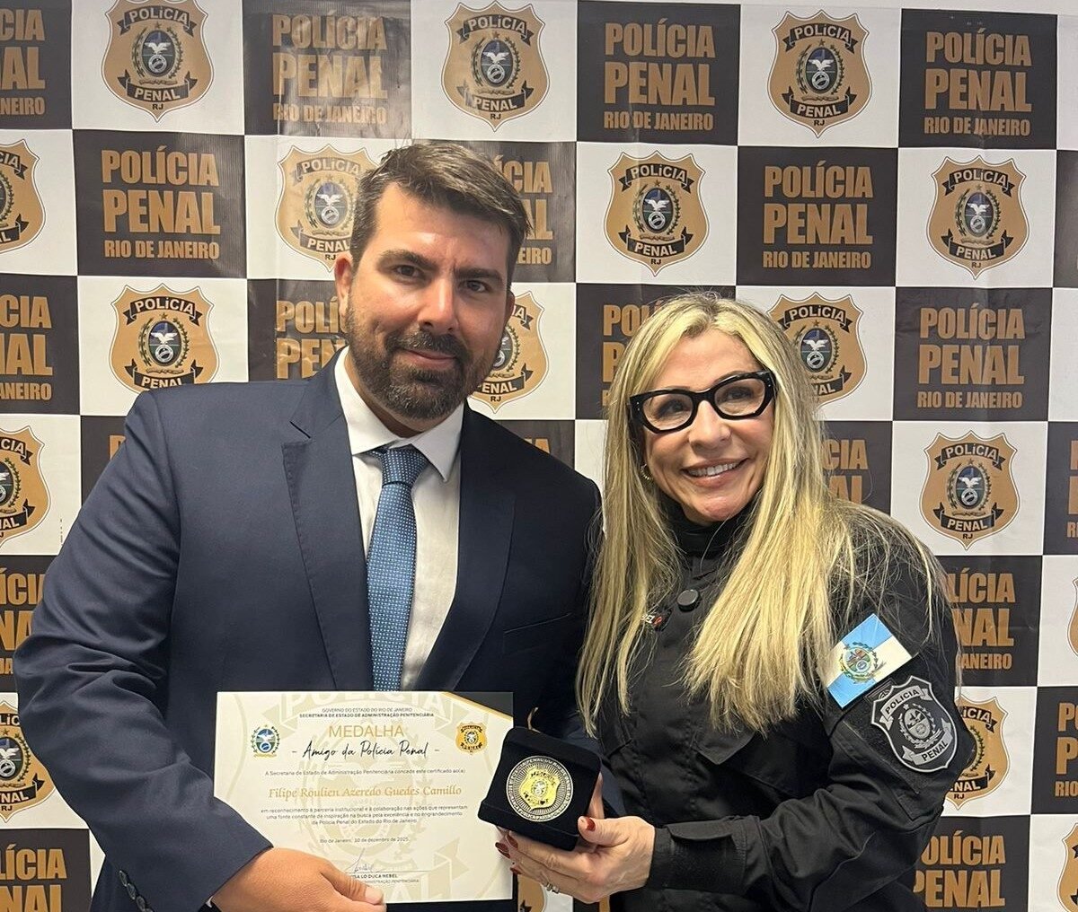 A condecoração foi entregue pela secretária de Estado de Administração Penitenciária, Maria Rosa Lo Duca, em cerimônia realizada na sede da pasta, no Centro do Rio de Janeiro, com a presença de autoridades e representantes do sistema penitenciário.