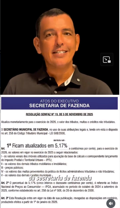 O ex-vereador de Rio das Ostras, Mauricio BM (foto), publicou vídeo nesta segunda-feira (26) nas redes criticando o reajuste de 5,17% no IPTU, que já começou a ser cobrado em janeiro de 2026. O ponto mais sensível, segundo ele, é o caminho escolhido pela gestão: o aumento não teria passado por lei, mas por resolução administrativa da Secretaria de Fazenda — um atalho burocrático para uma decisão que pesa no bolso de praticamente toda a cidade.