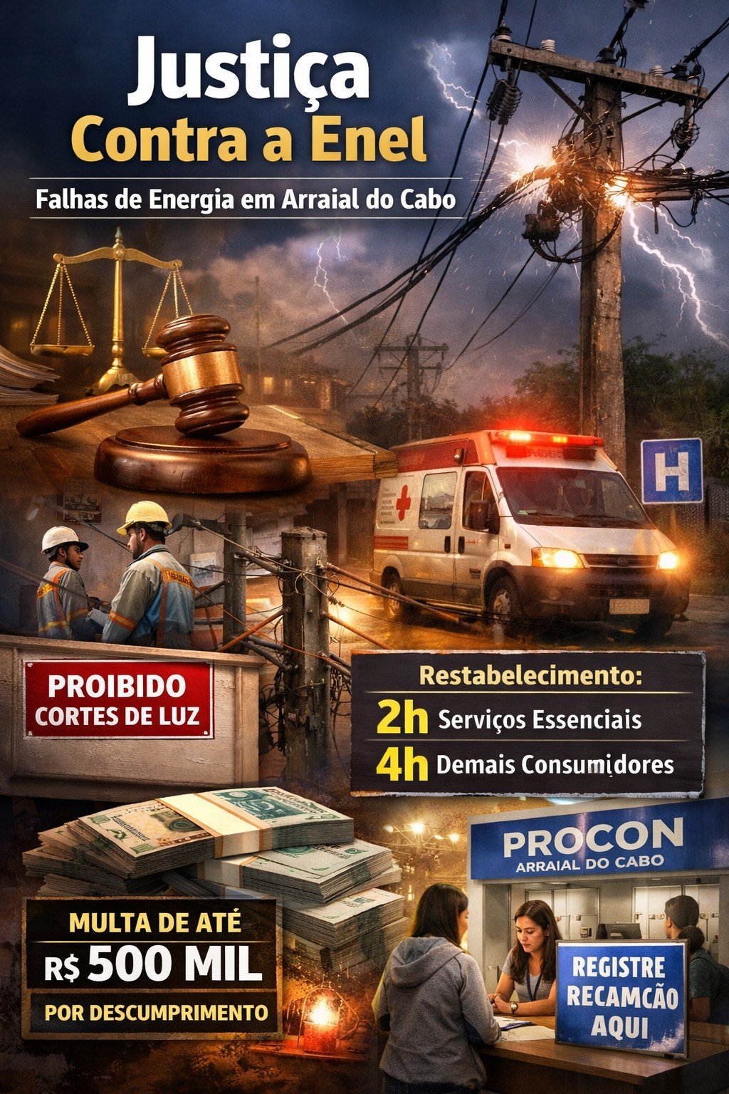 Além da atuação judicial, a Prefeitura promoveu, ao longo do mês de janeiro, um chamamento público para que moradores comparecessem à sede do Procon e formalizassem reclamações contra a Enel. Durante os atendimentos, equipes da concessionária Prolagos também estiveram no local prestando suporte emergencial para solucionar demandas dos usuários.