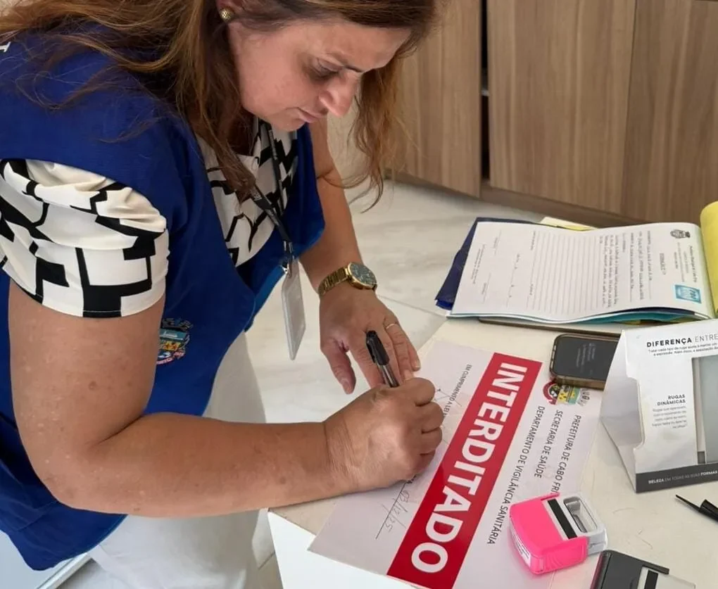 Uma operação conjunta da Prefeitura de Cabo Frio interditou, nesta quarta-feira (3), uma clínica de estética que funcionava de forma irregular na Avenida Teixeira e Souza, no bairro Vila Nova. A ação reuniu fiscais do Procon, Secretaria Municipal de Fazenda e Vigilância Sanitária Municipal, após o estabelecimento ignorar notificações anteriores e acumular multa de cerca de R$ 5 mil. No local, foram constatadas diversas irregularidades sanitárias e administrativas, incluindo a ausência de responsável técnico e a presença de ampolas e agulhas, apesar de a licença permitir apenas procedimentos não invasivos e de baixa complexidade.