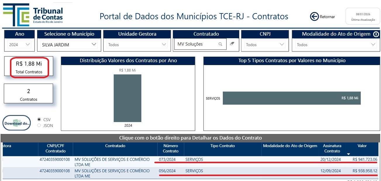 Entre janeiro e dezembro de 2025, a MV Soluções e Serviços recebeu cerca de R$ 4,2 milhões dos cofres públicos de Silva Jardim, segundo o sistema que registra despesas empenhadas e pagas. O dado chama atenção ainda mais porque a empresa acumula desgaste em Mangaratiba, onde houve suspensão de contrato e sindicância para apurar possíveis irregularidades — um histórico que deveria, no mínimo, acender o sinal amarelo para qualquer gestor que leve “controle e cautela” a sério.